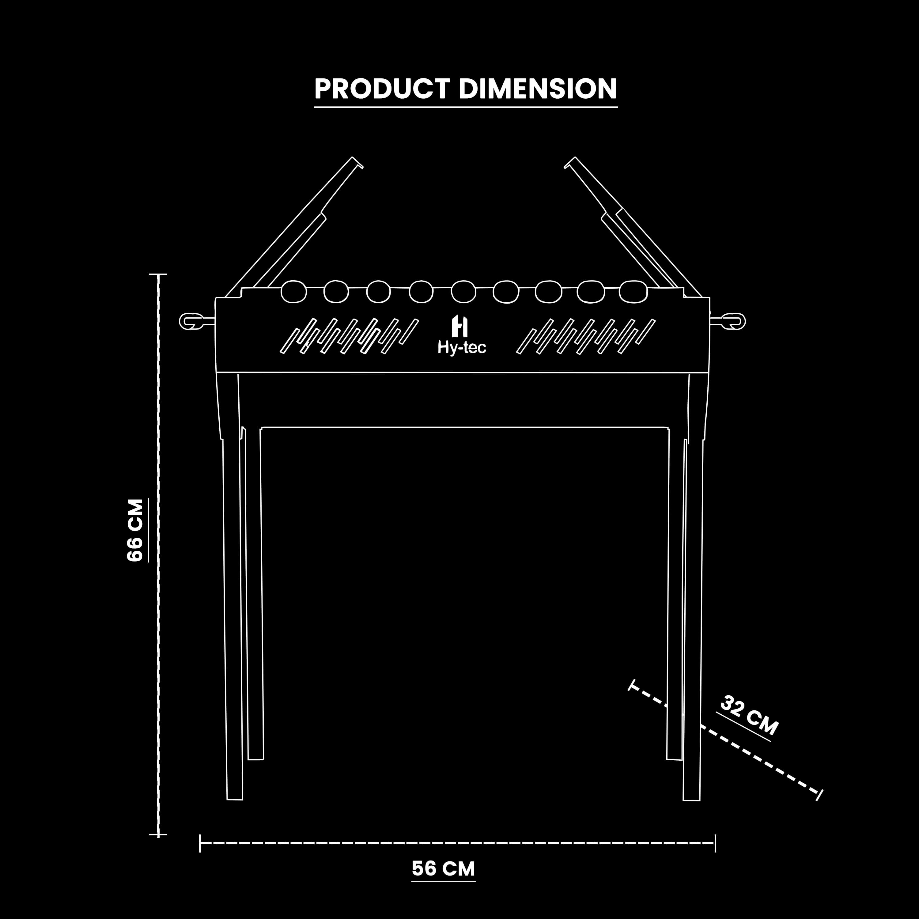 - Included Component: Charcoal Tray, Food Grill & 8 Skewers.