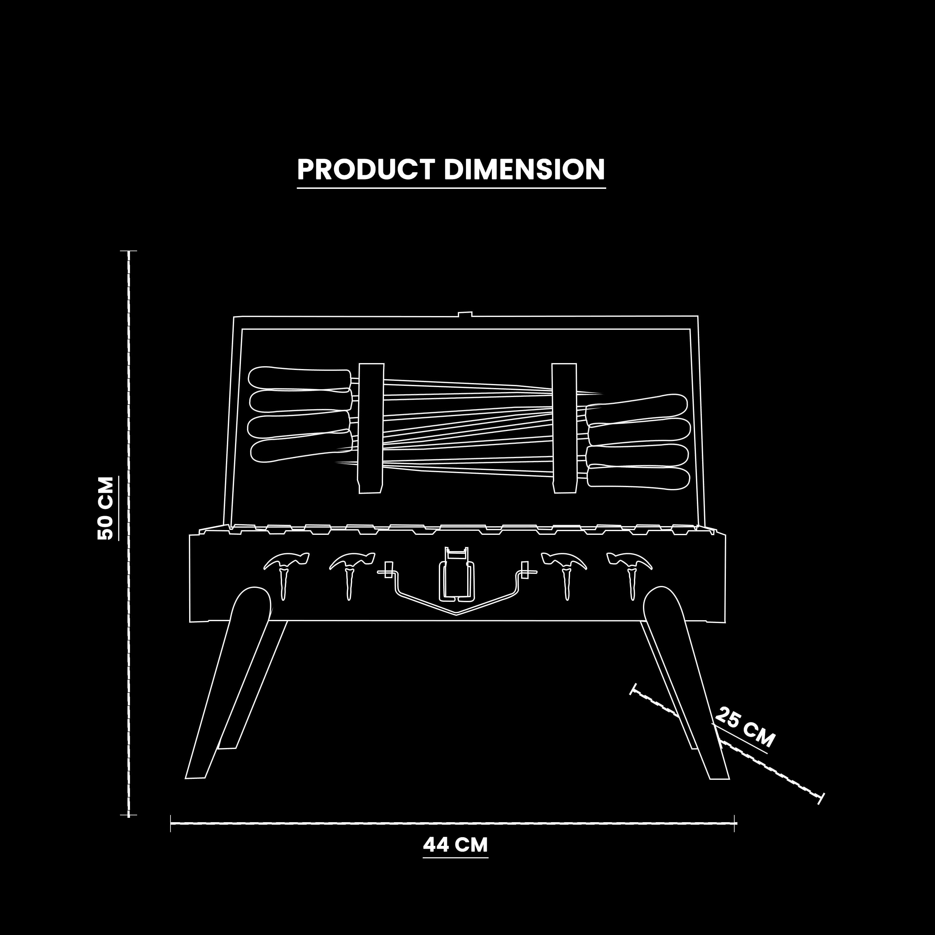 - Included Component: Charcoal Tray, Food Grill & 8 Skewers