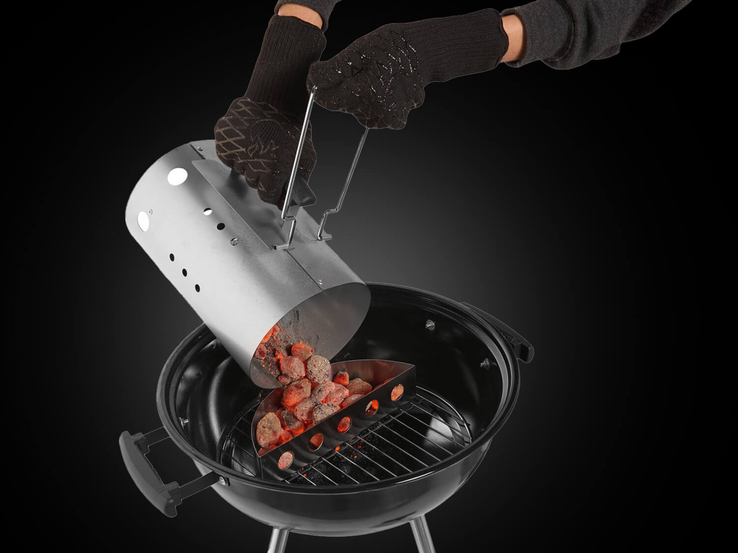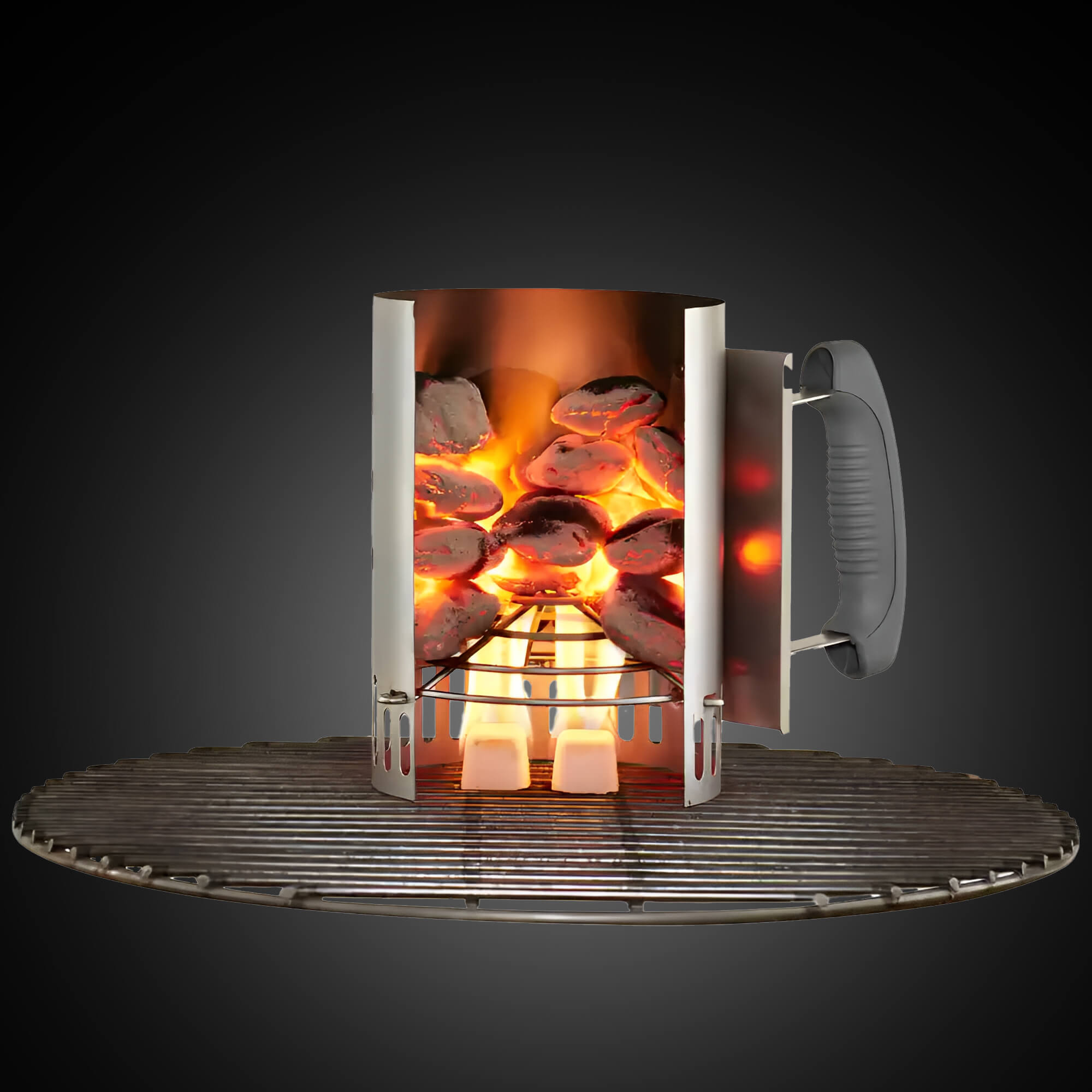 The Hy-tec charcoal and briquette chimney starter is the perfect cooking accessory to get you off to a quick and easy start for a nice picnic and a get-together with friends. Charcoal or briquettes will be ready to cook in less than 15 minutes, without the use of dangerous and toxic lighter fluids. Fill the chimney starter to the top with charcoal and briquettes, place it on the cubes for lighting and wait for the briquettes to turn gray. The chimney starter for hot coals and briquettes for barbecues is made of durable metal and the handle is made of heat-resistant plastic. It is easy to rinse under running water after use.